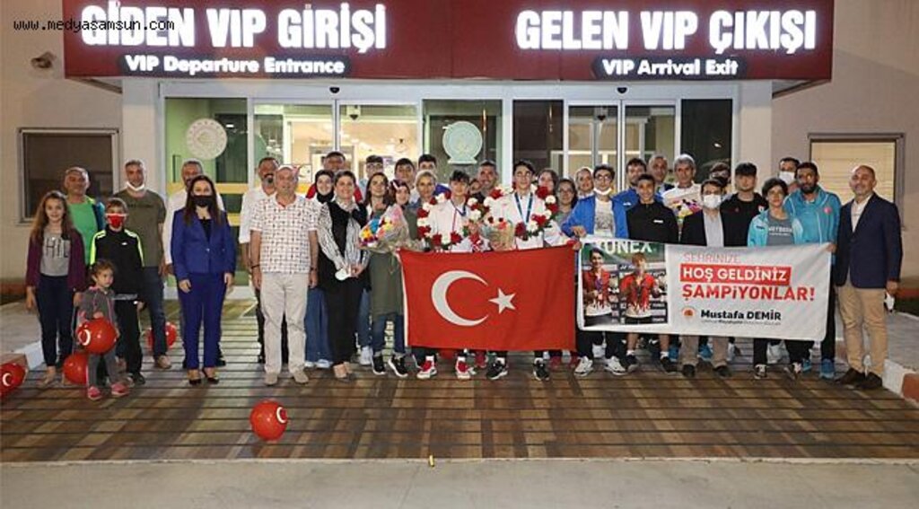 Badmindon Şampiyonası’nda Avrupa üçüncüsü olan sporculara Çarşamba Havalimanı’nda çiçeklerle karşılama töreni düzenlendi.