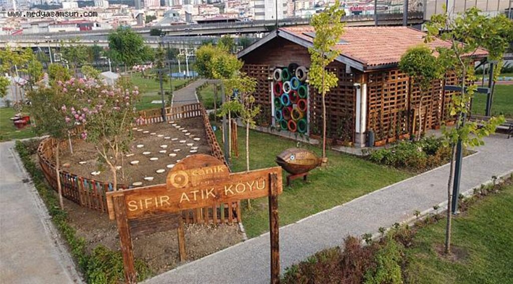 Yarışmada ödül kazanan 29 belediye arasında yer aldıklarını ifade eden Canik Belediye Başkanı İbrahim Sandıkçı, “Sıfır Atık Köyü” Projesi’ni kısa sürede tamamlayıp hayata geçirme aşamasına getirdiklerini belirtti.Projenin Samsun Millet Bahçesi’nde pilot bölge olarak hayata geçirileceği bilgisini aktaran Canik Belediye Başkanı İbrahim Sandıkçı, 31 Ağustos 2021 tarihinde sıfır atık Fikir ve Proje Uygulama Yarışması 2. Aşama başvurusu yaptıklarını beyan etti.“Bu projede öncelikle çocuklarımızı ve gençlerimizi projeye dâhil etmeyi amaçlıyoruz.” diyen Başkan İbrahim Sandıkçı, ‘Sıfır Atık Köyü’ adıyla oluşturulacak pilot bölge ile sürdürülebilir çevre anlayışını yaygınlaştırmayı hedeflediklerini sözlerine ekledi.Proje kapsamında kurulan ‘Geri Dönüşüm Müzesi’ ile gençlere sıfır atık ve çevre eğitiminin verileceğini ifade eden Başkan Sandıkçı, şunları söyledi: “Sıfır Atık Köyü Projesi ile çocuklara; kaynakların verimli kullanılmasını, atık oluşumunun olabildiğince engellenmesini, israfın önüne geçilmesini, oluşan atıkların kaynaklarına göre ayrı toplanması ve bu atıkların geri dönüşümü ile enerji kaynağı haline getirilmesini yerinde öğretmeyi hedefledik.”Projede yer alan açık tarla alanı ve kapalı sera alanlarında ‘ata tohumu’ ekimi yapılacağını dile getiren Başkan İbrahim Sandıkçı, bu tür uygulamalarla gençlere tarım, çevre ve toprak sevgisi aşılanacağının altını çizdi.Canik Belediyesi AR-GE Birimi tarafından geliştirilen projede ayrıca; atıkların depolanıp lisanslı firmalara teslim edileceği Geçici Depolama Alanı; atık ahşap, lastik, halat, demir gibi malzemelerden oluşan Oyun Grupları ve Oturma Alanları; hurda atıklardan imal edilmiş balık figürlü bir sanat eserinin de yer aldığı Hurda Sanat Alanı; tarlalardan çıkan yeşil atıkların gübreye dönüştürüldüğü Kompost Alanı ve eski evlerden alınmış ahşap parçalardan yapılmış bilgilendirici tabelaların mevcut olduğunu bildirildi.‘Sıfır Atık Köyü’nde Neler Var?Hurda Malzemelerden Tasarım:Atık sac, metal vb. malzemeler kullanılarak Karadeniz'in sembollerinden olan balık tasarımı imal edilmiştir.Geri Dönüşüm Müzesi:Yeşil bir bina olarak tasarlanan Geri Dönüşüm Müzesi, güneş panelleri ve rüzgâr türbininden alınan enerji ile aydınlatılmaktadır. Daha önce çardak olarak kullanılan yapının etrafı atık palet ve lastiklerle kapatılıp sarmaşıklarla düzenleme yapılmıştır. Bu oluşumla birlikte doğaya uyumlu olarak ‘Kentsel Isı Ada’ etkisi azalması sağlanmıştır. Yenilenebilir enerji kaynakları kullanılarak sera gazı salınımıazalırken karbon ayak izi ve küresel ısınma karşısında pozitif bir yaklaşım sergilenmiştir. Öğrencilerin eğitim alanı olarak da kullanabileceği Geri Dönüşüm Müzesi’nde bisiklet sürerek pedal yardımıyla ışık enerjisi dönüşümü ve telefonlarını şarj edebilecekleri bir mekanizmaya da yer verilmiştir. Kasalarla oluşturulmuş Dönüşüm Kütüphanesi ile okuma alanları, çevre bilinci eğitimi, sıfır atık eğitimi, geri dönüşüm atölye çalışmalarına yer verilmiştir.Yağmur Suyu Depolama Alanı:Müzenin çatısına yerleştirilmiş su toplama kanalları yardımıyla, yağmur suyu hasadı yapılmaktadır. Depolama tankına depo önü filtre takılarak dış kaynaklardan gelen yaprak vb. malzemelerin girmesi engellenmiştir. Depolanan su, tarla alanlarında kullanma suyu olarak kullanılmaktadır.Atık Geçici Depolama Alanı:Atık Köyü’nden çıkacak atıklar arasında karakterizasyon çalışması yapılarak toplanacak atıklara göre atık kutuları yerleştirilmiştir. Toplanan atıklar ayrı biriktirilerek lisanslı firmalara teslim edilmektedir.Tarım Alanı:Öğrencilerle birlikte Ata Tohum ekim-dikim çalışmaları yapılacak, tohum-fidan ve çevre sevgisi oluşturulacaktır.Dönüşüm Seraları:Ahşap atık, halat, naylon gibi malzemeler kullanılarak oluşturulan sera alanları Canik Belediyesi tarafından düzenlenecek etkinlikler doğrultusunda okullara teslim edilecektir. Bu şekilde öğrencilerin sorumluluk sahibi olmaları ve kendi elleriyle ürün yetiştirmeyi öğrenmeleri amaçlanmıştır.Kompost Alanı:Atık varil olarak tasarlanan Kompost Alanı’nda, bahçeden çıkan yeşil atıklar toprakla karıştırılarak 4-6 hafta arasında gübre haline getirilip tarlalarda toprak iyileştirici olarak kullanılacaktır.Geri Dönüşüm Oyun Gruplar ve Oturma Alanları:Eski ahşap atık, kütük, lastik, halat vb. malzemelerden köyün konseptine uygun olarak tasarlanamış kaydıraklı traktör, mini karavan, salıncak, tırmanma parkuru, yürüme parkuru ve lastikli geçitler oluşturulmuştur.