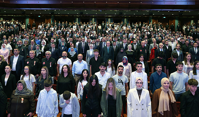 Cumhurbaşkanı Erdoğan, yaptığı konuşmada, Aile ve Sosyal Hizmetler Bakanlığı tarafından düzenlenen merasimde şehit yakınları, gazi ve gazi yakınlarıyla bir araya gelmekten memnuniyet duyduğunu belirtti.Cumhurbaşkanı Erdoğan, "Tüm kalbimle, tüm hücrelerimle vatanı, milleti, bayrağı için toprağa düşmüş tüm şehitlerimizi, sizin yiğit evlatlarınızı ve yakınlarınızı rahmetle yad ediyorum. Cenabı Allah asil ruhlarını şad, mekânlarını cennet, makamlarını inşallah ali eylesin" ifadelerini kullandı.Yarın, Gaziler Günü'nü idrak edeceklerini anımsatan Cumhurbaşkanı Erdoğan, tüm gazilerin gününü tebrik etti.Kimin ne yapmaya çalıştığının farkında olduklarını belirten Cumhurbaşkanı Erdoğan, şunları kaydetti:"Senaryoyu da senaristi de gayet iyi biliyoruz. Bölgemizi istikrarsızlığa hapsetmeye yönelik planlar inşallah tutmayacak. Emperyalist ve siyonist kan dökücüler, sinsi emellerine ulaşamayacak. Allah'ın izniyle her türlü oyunu bozacak, her türlü senaryoyu yırtıp atacak kudrete, kuvvete, kapasiteye ve elbette basiret ve ferasete sahibiz. Tahriklere kapılmadan, sağduyu ve serinkanlılık içinde dikkatli ve kararlı bir şekilde kutlu yürüyüşümüzü sürdüreceğiz. 86 milyon olarak ebedi kardeşliğimize, birlik ve beraberliğimize sıkı sıkıya sarılarak, oyunları bir kez daha bozacağız.Bizi etnik köken, mezhep ve hayat tarzı üzerinden bölmeye çalışanlara inat birbirimize tutunacağız, birbirimize sarılacağız, birbirimize güveneceğiz, birbirimizle hoşgörü ve empatinin diliyle konuşacağız. Biz Türk'üyle, Kürt'üyle, Laz'ıyla, Arap'ıyla, Çerkez'iyle bir olacağız, iri olacağız, beraber olacağız, kardeş olacağız. Ümitli, sabırlı, sağlam ve samimi adımlarla ilerlediğimiz Terörsüz Türkiye hedefine inşallah beraberce vasıl olacağız. Sizlerin de desteği ve hayır duasıyla bu süreci alnımızın akıyla, şehit ve gazilerimizin emanetine en ufak bir leke bulaştırmadan inşallah başarıyla taçlandıracağız.Türkiye Cumhuriyeti vatandaşları olarak yeni bir kardeşlik destanını yeni bir başarı hikâyesini hep birlikte yazacağız. Buna hazır mıyız? Bunu yapmaya var mıyız? İşte o zaman şehitlerimiz de bize ebedi alemden dualarını yansıtacak. İstiklal Marşımızda ne diyor? 'Doğacaktır sana vadettiği günler Hakk'ın, kim bilir belki yarın, belki yarından da yakın.' Rabbi'm yar ve yardımcımız olsun."Cumhurbaşkanı Erdoğan, görev yerleri belli olacaklara, millete hizmet yolunda Mevla'dan başarılar dileyerek, "Şehitlerimiz, sevgililer, sevgilisi Peygamberimize ve peygamberlere en yakın makamdalar. Rabb'im bizlere de bu makamı nasip eylesin. Şehitlerimize ve gazilerimize milletçe şükranlarımızı tekraren ifade ediyorum" dedi.