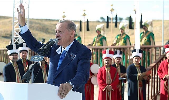 Cumhurbaşkanı Recep Tayyip Erdoğan, Malazgirt Zaferi’nin 954. yıl dönümü kutlama törenleri kapsamında Bitlis’in Ahlat ilçesinde düzenlenen etkinliğe katılarak bir konuşma yaptı.Cumhurbaşkanı Erdoğan, konuşmasında, “İçinde bulunduğumuz asır inşallah, Türkiye Yüzyılı olarak tarihteki yerini alacaktır. Çok daha müessir, çok daha muteber, çok daha müreffeh bir Türkiye için çıktığımız bu yolda kimsenin oyununa gelmeyecek, kurulan tuzaklara asla düşmeyeceğiz. Hasımlarımızı rahatsız ve tedirgin eden terörsüz Türkiye menziline doğru kendimizden emin bir şekilde, ne yaptığımızı, ne murat ettiğimizi bilerek kararlı adımlarla yürümeyi sürdüreceğiz. Şehit ve gazilerimizin emanetini yere düşürmeden huzurun, sükûnun ve muhabbetin merkezinde yer aldığı aydınlık bir Türkiye’yi hep birlikte inşa edeceğiz” açıklamasında bulundu.