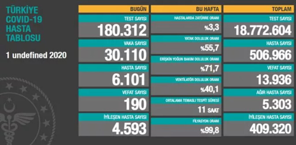 Türkiye Koronavirüs ile mücadelede bugün en çok can kaybını yaşadı. 1 Aralık tarihinde 190 vatandaşımız koronavirüs nedeniyle hayatını kaybetti.