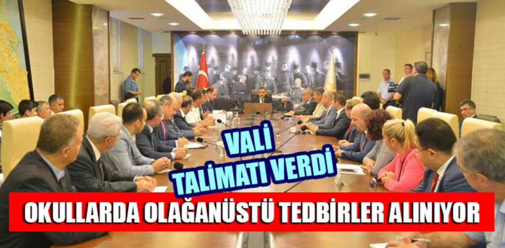 Vali Osman Kaymak, İçişleri Bakanlığından gelen talimatlar doğrultusunda bir toplantı düzenleyerek şu açıklamaları yaptı. Vali Kaymak konuşmasında ‘Okulların açılmasına yaklaşık bir hafta kaldı, bu çerçevede şu an tüm Türkiye'de Valilerimiz ve Kaymakamlarımız ilgili kurum paydaşlarıyla okul çevresinin güvenliği ve servis araçları ve taşıma konularını okullar açılmadan görüşmek üzere toplandık.