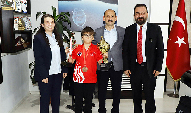 Samsun Gençlik ve Spor İl Müdürü Feyzullah Dereci, Karadağ’da düzenlenen Satranç Avrupa Yaş Grupları Şampiyonasında Avrupa 3.sü olan Mustafa Demirkan’ı makamında ağırlayarak, tebrik etti.