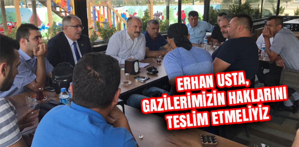 MHP Grup Başkanvekili Erhan Usta, gazilerin sorunlarını dinledikten sonra söz alarak, “Kutsal vatan topraklarımızın savunması ve milletimizin bölünmez bütünlüğü için görev başında sakatlanan veya uzvunu kaybeden Gazilerin fiziksel, psikolojik ve sosyal rehabilitasyonlarının çağdaş koşullarda yapılabilmesi; engelli duruma düşenlerin yaşam boyu devamlı bakımlarının sağlanabilmesi hepimizin görevidir” dedi.